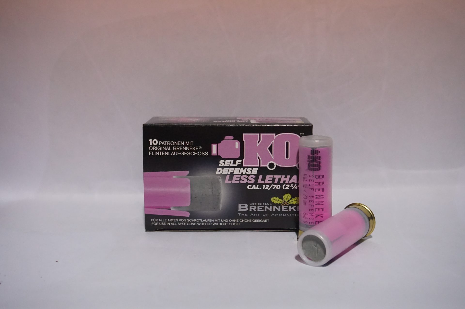 BRENNEKE wprowadza zupełnie nowe rozwiązanie w dziedzinie ?mniej śmiercionośnej amunicji?. Wybrany materiał jest wyrazem znaczącej innowacji i nazywa się KOline?. Dzięki szybkiej deformacji nowy pocisk może być używany do wszystkich celów samoobrony, a także do egzekwowania prawa. Unikniemy wad gumowych kul lub tzw. ?torebek fasoli? i podobnych produktów. Prędkość wylotowa wynosi tylko 96 m/s. a energia wynosi 46 dżuli. Obie liczby są znacznie poniżej danych porównywalnych wkładów i umożliwiają odpowiednią aplikację. Optymalny zasięg będzie wynosił od 8 do 10 metrów. K.O. Self Defence Slug cal. 12/70 (2 ??) o wadze 9,1 g / 140 gr zatrzymuje każdego wroga natychmiast i jednoznacznie. Podkalibrowy pocisk jest wbity w różowy sabot. Nowy nabój K.O. może być używany z każdej strzelby z czokiem lub bez, ma prawie niezauważalny odrzut. W pudełku 10 sztuk.